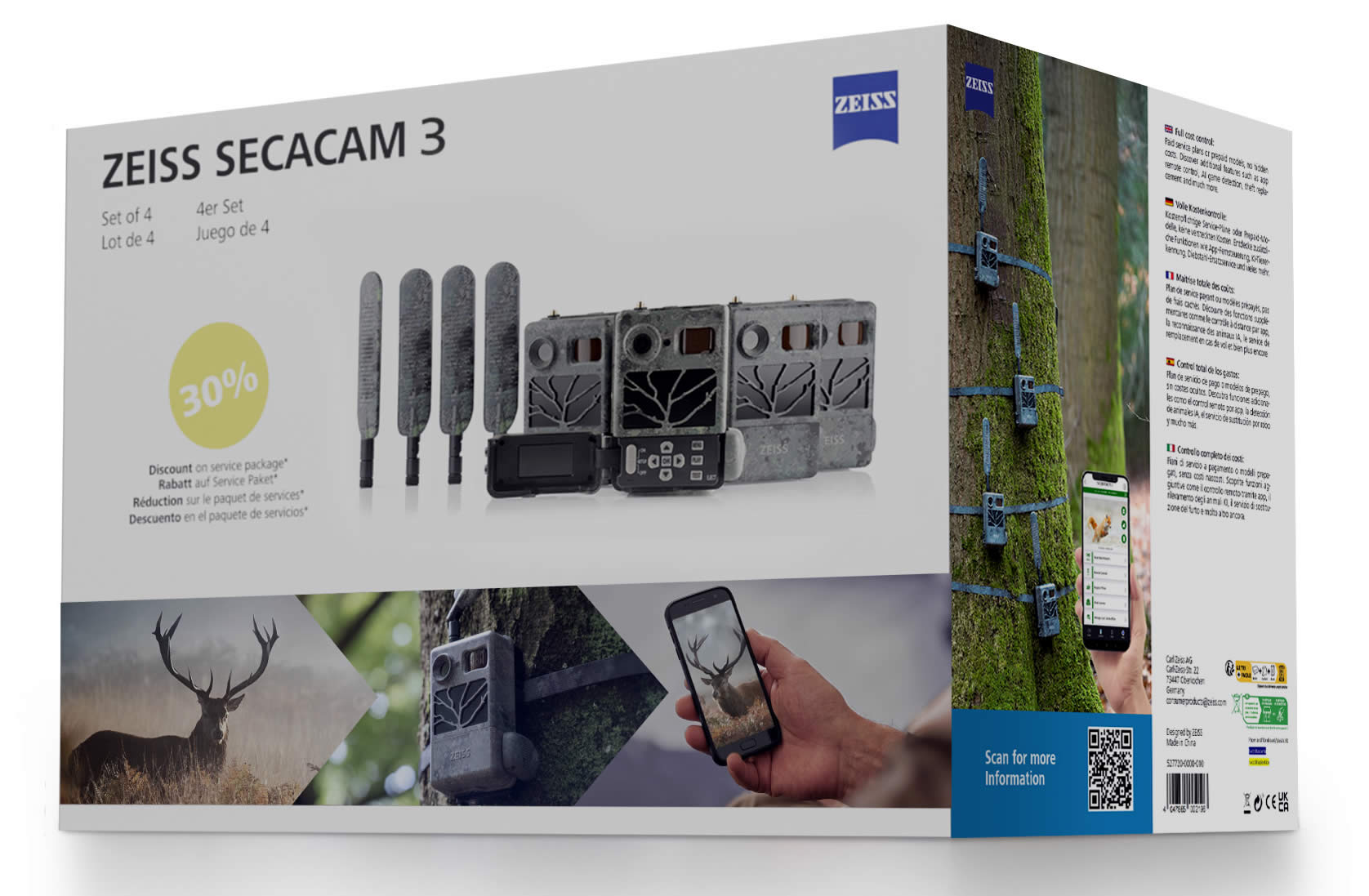 Wie die bewährten Modelle ZEISS Secacam 5 und 7 verfügt auch die ZEISS Secacam 3 über ein leistungsstarkes CAT 4 LTE-Modul. Dieses ermöglicht eine schnelle und stabile Datenübertragung, selbst in abgelegenen Gebieten. Die integrierte SIM-Karte sorgt für eine nahtlose Nutzung in ganz Europa, sodass Du die Kamera auch in sehr entlegenen Gebieten problemlos einsetzen kannst.